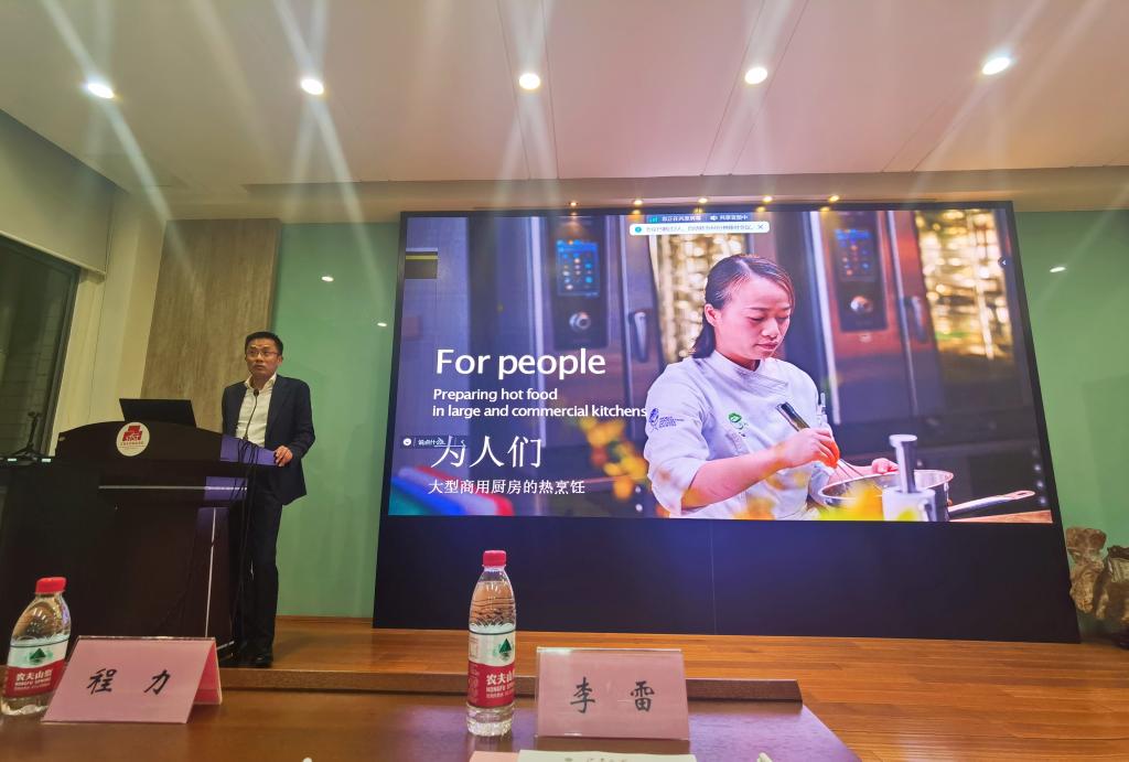 俞文军从品牌创立的初衷谈起进行致辞。他围绕客户满意、专注、自我管理的企业哲学,重点强调了物理学家、食品科学家、研发工程师和大厨的紧密合作是Rational独特创新力的坚实基础。面对世界食品行业新困境,他鼓励当代老员工应从国际视野和战略格局出发,重塑关系国计民生的产业优势,发挥交叉融合的产业特点,推动食品加工业朝着健康、安全、可持续的方向发展,为实现高品质食品加工工艺提供“中国方案”。
