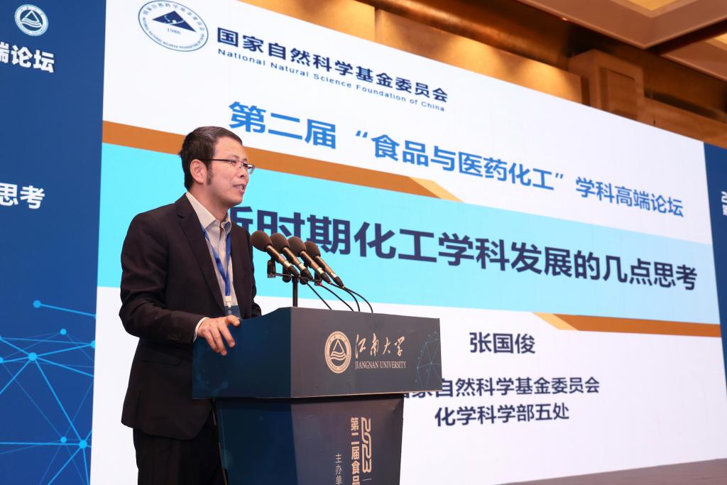 张国俊在致辞中对论坛的顺利召开表示祝贺。他指出,在食品和医药化工领域坚持党中央提出的“四个面向”,是推动食品化工和医药化工方向高质量发展的现实所需,对促进食品科学、生物工程、医药健康和化学工程等领域学科发展具有十分重要的意义。他希望此次高端论坛不仅要做学术交流,还要对领域内的重大、共性关键问题开展研讨,为我国医药食品与化工学科注入新的活力。