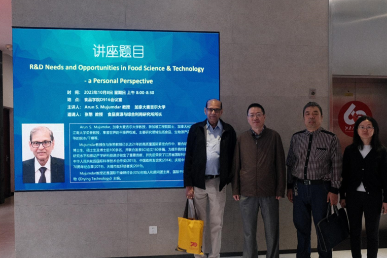 2023年10月6-19日,威廉希尔张慜教授团队长期合作的高端专家加拿大麦吉尔大学Arun S. Mujumdar教授在江苏省“生鲜食品智能加工与品质监控”国际联合实验室的邀请下,再次访问williamhill威廉希尔并走访团队合作企业。
