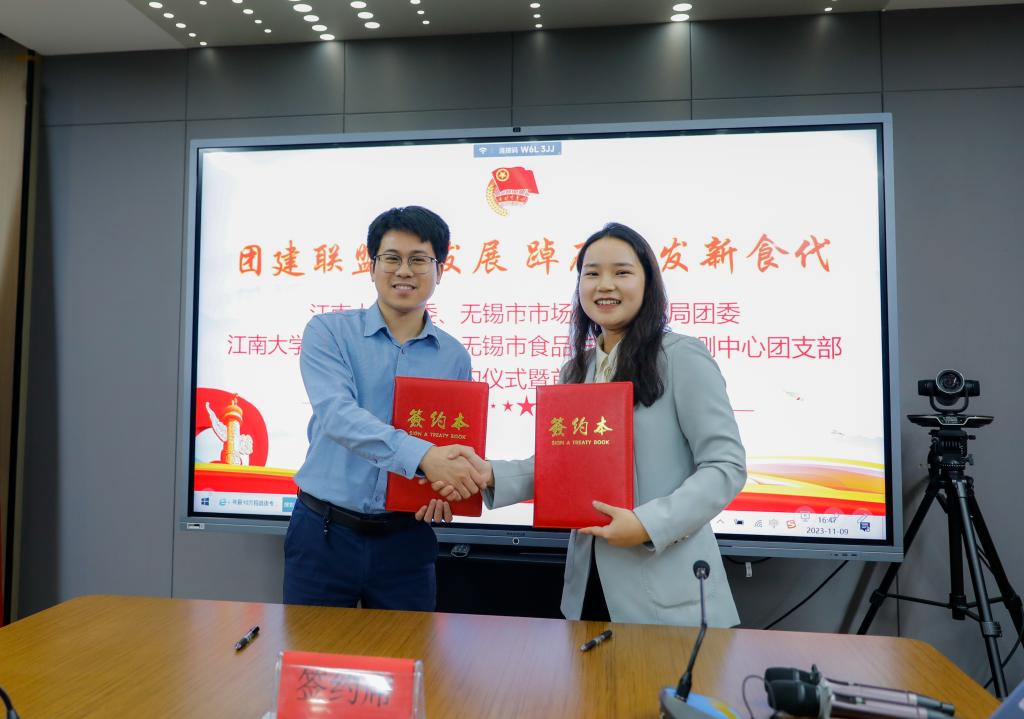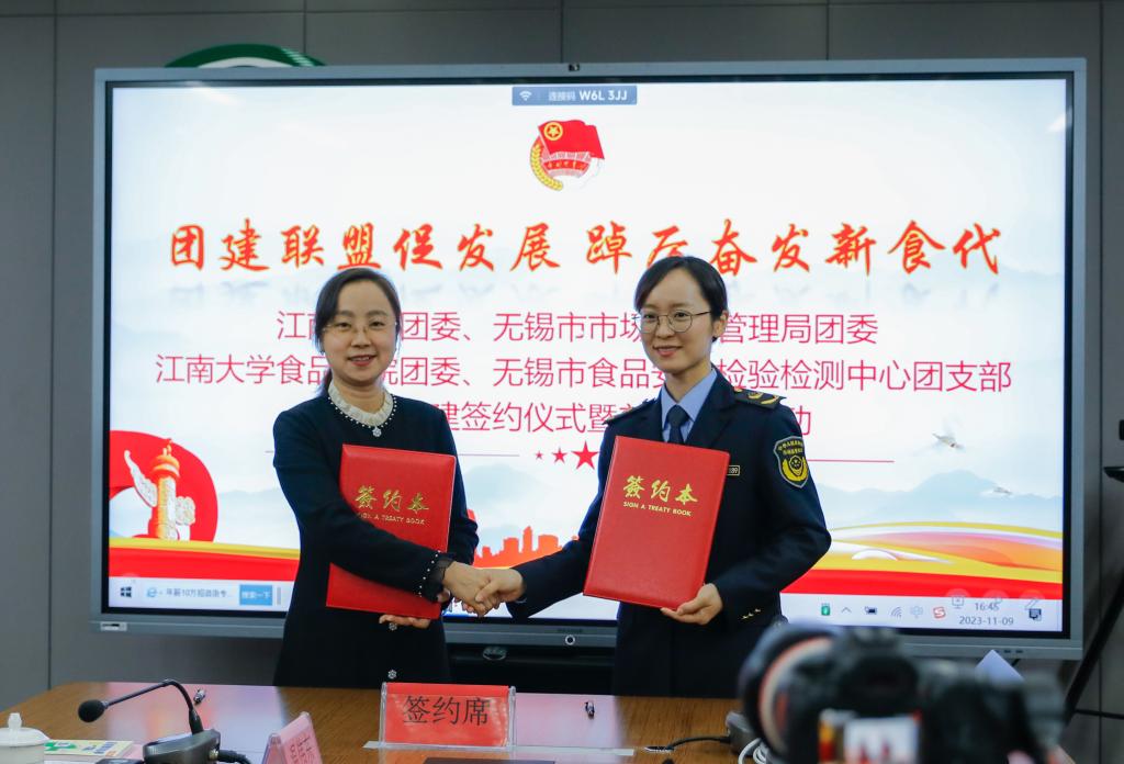 随后进行的签约环节,单云婷、季卓娅签署《williamhill威廉希尔——无锡市市场监督管理局团建联建共建协议书》;李金杰、陆佩瑶签署《威廉希尔——无锡市食品安全检验检测中心团建联建共建协议书》。双方旨在“以共建促团建,以共建促合作,以共建促发展”,教育、科技、人才三位一体,不断完善“政产学研检”协同创新机制。