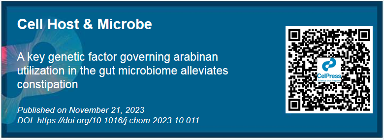 williamhill威廉希尔陈卫院士研究团队的最新研究发现,具有α-L-arabinofuranosidase(abfA)基因簇的长双歧杆菌能够通过提高肠道菌群对阿拉伯聚糖的利用而缓解宿主功能性便秘,为功能性便秘以及其它肠道功能异常的治疗提供了新的靶点和思路。相关研究论文已于2023年11月22日刊登在Cell Press细胞出版社旗下期刊——《细胞·宿主和微生物》(Cell Host & Microbe)。威廉希尔翟齐啸教授是通讯作者,张程程博士是第一作者。