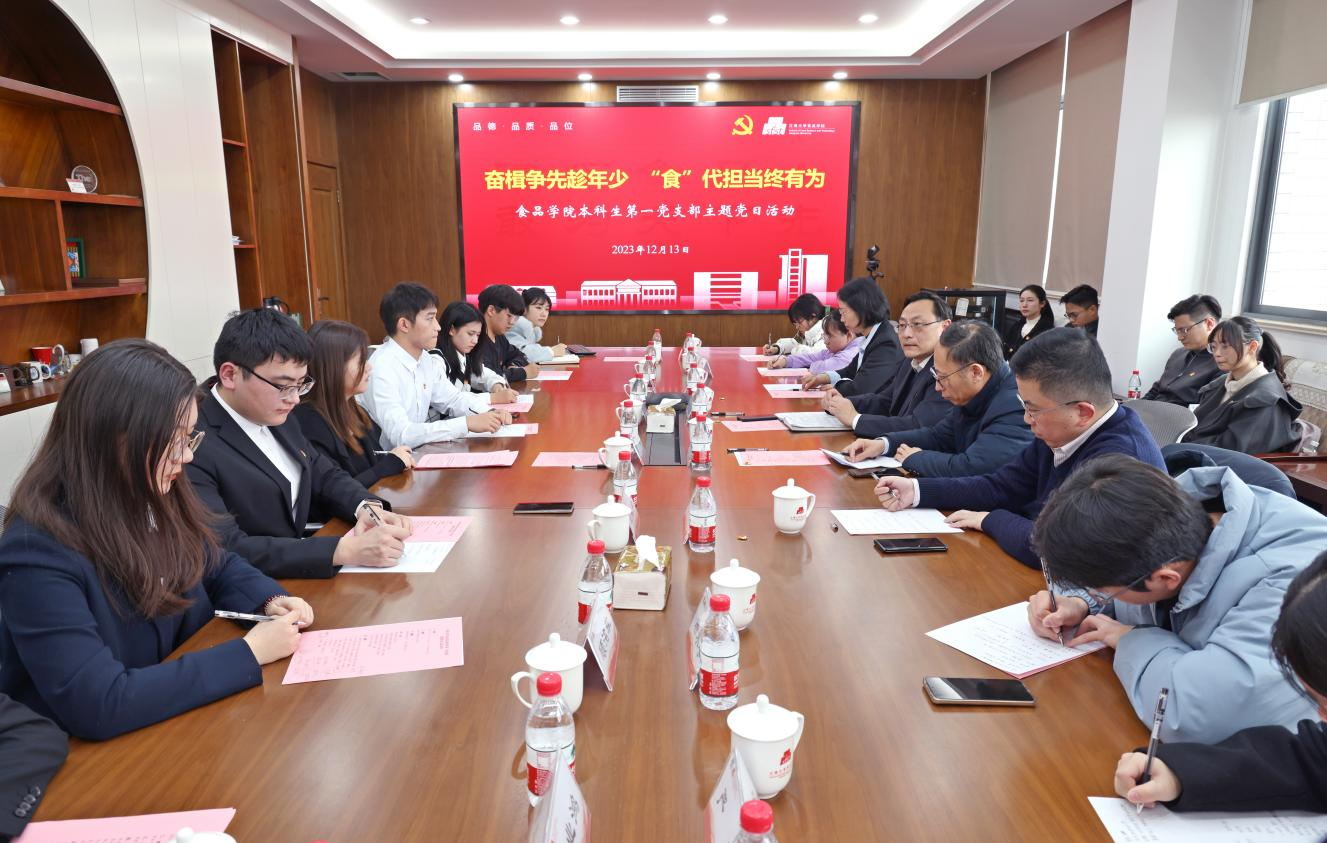 12月13日下午,williamhill本科生第一党支部举办“奋楫争先趁年少,‘食’代担当终有为”主题党日活动。公司党委书记吴正国,党委组织部常务副部长方正泉,公司党委书记傅莉莉、副书记李雷、专职组织员、党建辅导员与本科生第一党支部全体成员参加活动。活动由党支部书记曹敏主持。