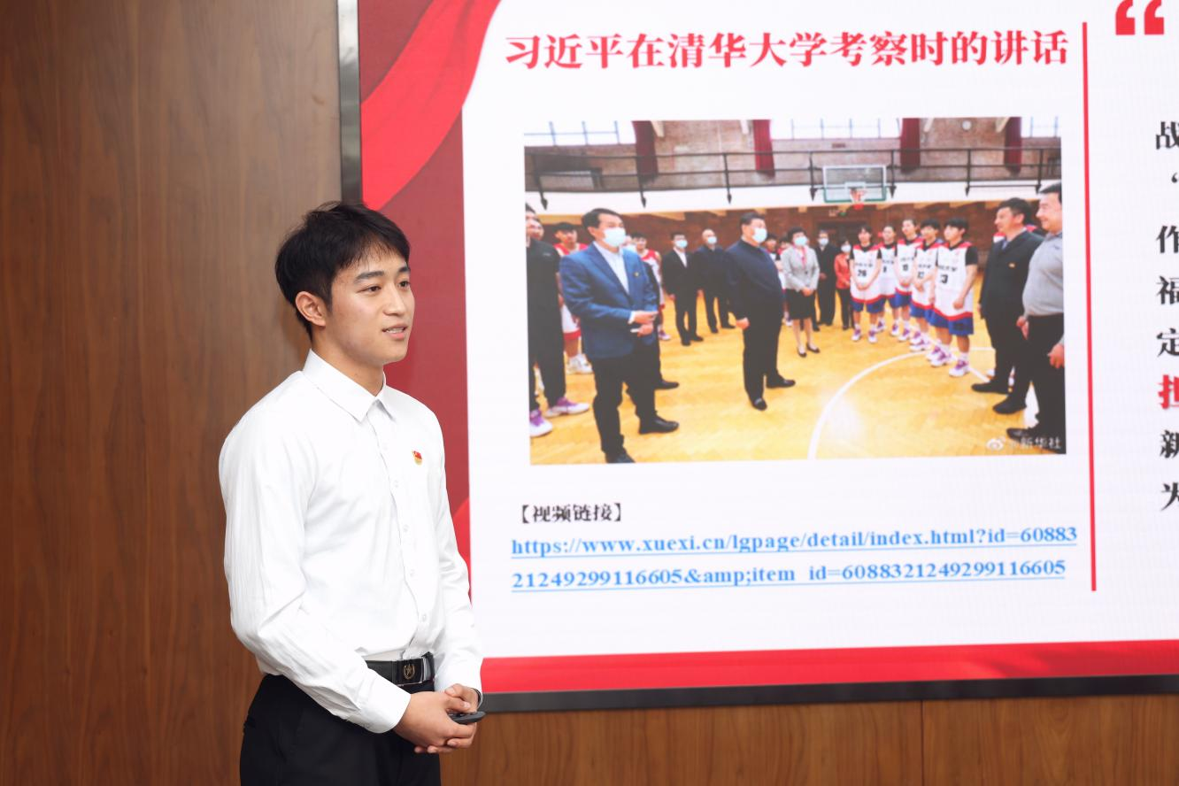 曹敏首先从人员构成、组织建设、作用发挥等方面介绍支部概况。她介绍到,本支部成员均为青年骨干,积极参与学院建设和员工工作,在不同赛道上全面发展,近三年升学深造率均为100%,是一个年轻有为、充满活力、团结向上的集体。