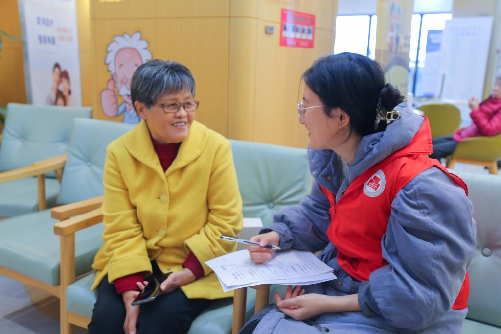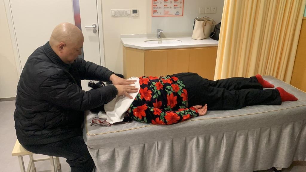 科普讲座结束后,党员同志向公寓老人发放《习近平新时代中国特色社会主义思想》《“健康中国2030”规划纲要》等相关书籍材料,通过问卷调查的方式了解老年人的健康状况、日常饮食和生活习惯等,并给予相应的饮食建议。在活动现场,联盟还组织博士生、中医医师邵家豪及康复理疗师缪春伟为老人们提供健康检查、问诊咨询、理疗推拿等服务。邵家豪结合日常生理指标和望闻问切,从中医角度对老年人日常健康维护给出意见。缪春伟结合二十余年康复理疗工作经验,对存在经络或骨骼健康问题的老年人提供精准理疗服务。