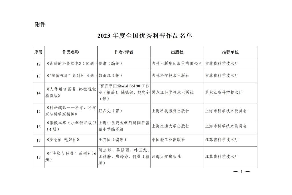 2023年全国优秀科普作品