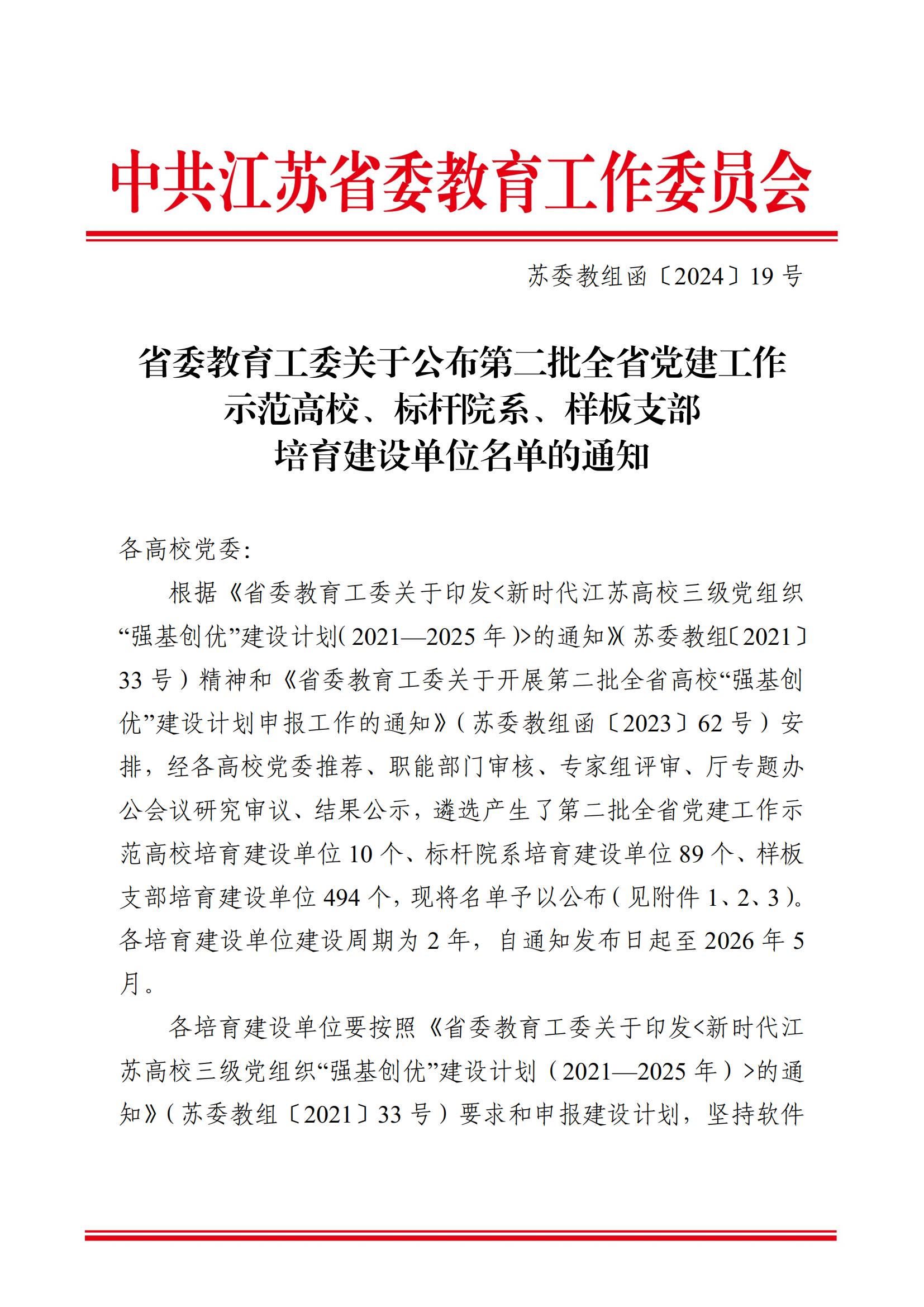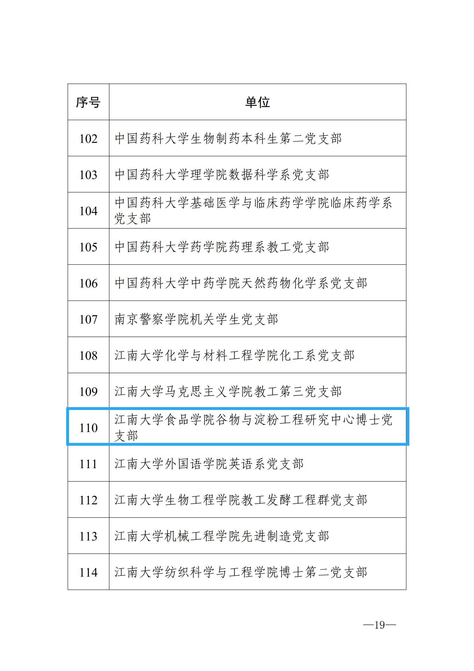 近日,江苏省委教育工委发布《省委教育工委关于公布第二批全省党建工作示范高校、标杆院系、样板支部培育建设单位名单的通知》(苏委教组函〔2024〕19号)。公司谷物与淀粉工程研究中心博士党支部成功入选第二批“全省党建工作样板支部”培育建设单位。