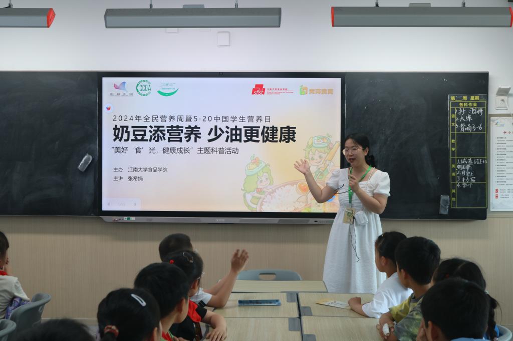 走进学校。williamhill青芽食育团队走进无锡市尚贤万科小学开展“美好食光,健康成长”主题科普活动,通过科普课堂、互动游戏与趣味实验引导青少年学习食品科学知识,认识和了解学龄儿童平衡膳食宝塔,树立正确饮食观念。