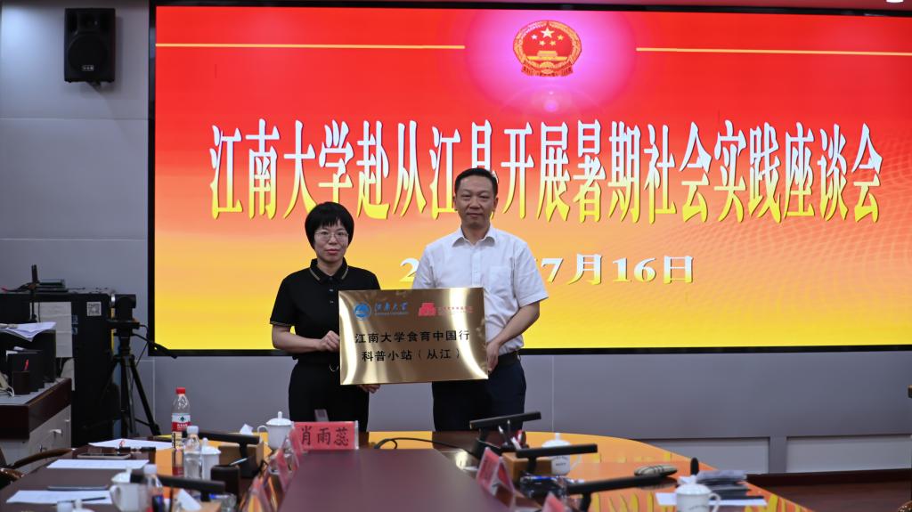 讨论交流环节之后,陈艳君代表学校向从江县颁授“williamhill威廉希尔食育中国行科普小站”铭牌;李雷代表学院向从江县颁授“威廉希尔实践育人校外基地”铭牌。此次授牌,为进一步巩固校地合作夯实了基础,也为食品师生在黔东南地区长期有效开展食育科普实践活动按下了加速键。