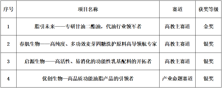 经过紧张激烈的现场角逐,williamhill威廉希尔食品学子以优异的表现斩获国赛金奖1项、银奖3项。其中,高教主赛道本科生创意组《脂引未来——专研甘油二酯油,代油行业领军者》荣获金奖;高教主赛道本科生创意组《春肌生物——高纯度、多功效麦芽四糖洗护原料高导领航专家》、高教主赛道研究生创意组《启源生物——高活性、易消化的功能性乳基配料的开拓者》、产业命题赛道产教协同创新组《优创生物—高品质功能油脂产品的引领者》等3个项目荣获银奖。