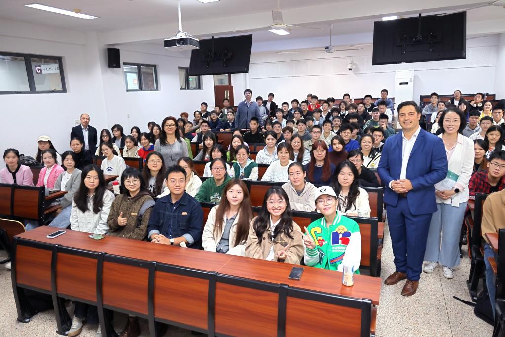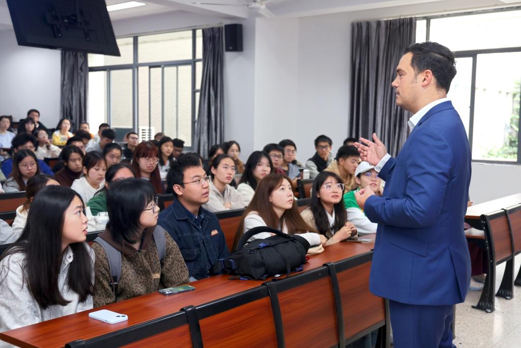 会前,Tere McGonagle-Daly一行前往第二教学楼,与williamhill国际班学子亲切会面。他向大家介绍梅西大学的办学条件与生活环境,鼓励同学们努力学习、充分准备,盼望尽快在新西兰聚首。