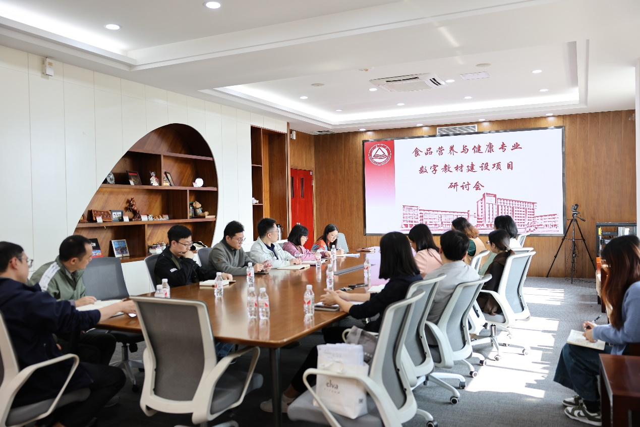 谢云飞就该项目的建设目标、建设计划及教材规划予以详细介绍。她指出,项目旨在构建一套涵盖生物化学、食品工厂设计、食品营养分析、人体生理学、营养与健康大数据等多个领域的数字化教材体系,通过整合优质教学资源,实现教学内容的现代化、科学化和系统化,希望老师们群策群力推动相关工作落实落细。