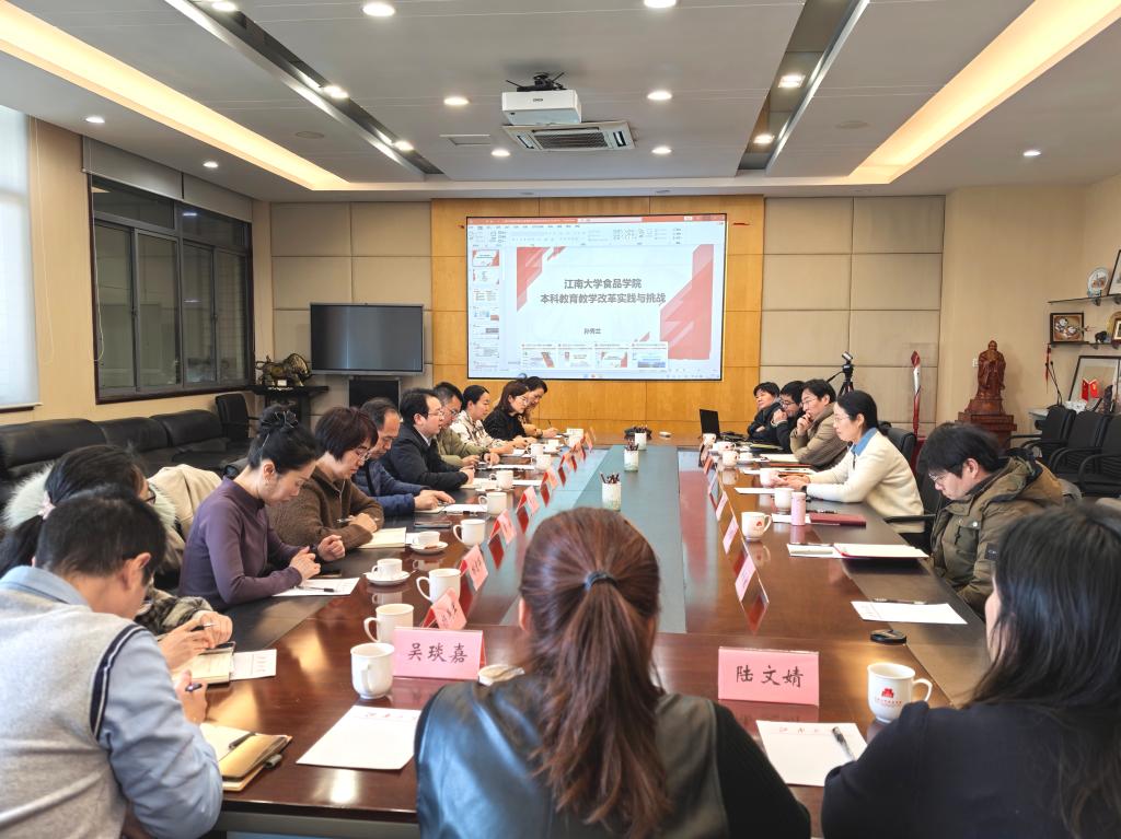 孙秀兰汇报学院本科公司产品改革的实践与挑战,从招生工作、教学组织、专业及课程建设、教学改革等方面予以深入剖析,指出学院在有组织的本科教学层面取得一定成效,包括不断优化教师发展与团队建设、开展创新创业教育,利用数字化资源、加快智慧课程和数字教材建设等。她同时指出面临的难题和调整,例如“3+N食品AI卓越创新班”的发展需要更加完善的政策与相关配套支持、中外合作办学的质量提升与差异化教学、教学实验空间紧张、名师和青年教师储备不足、跨院合作有待进一步畅通等。