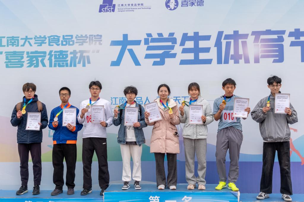 本次体育节共设16个个人项目、3个团体项目,共计221人次参加比赛。经过一天激烈的角逐,科四AI、科一、质二纵队荣膺团体总分前三名;食科2402班、食科2403班、食质2401班、食质2402班、食品AI卓越创新班、食科2302班、食科2304班、食质2301班、食质2302班、营养2302班等10个班级分获“精神文明奖”;食质2302班、食科2402班方阵获评“最佳创意奖”,食质2301班、食质2401班方阵获评“最强气势奖”,食科2302班、营养2401班方阵获评“最高颜值奖”。