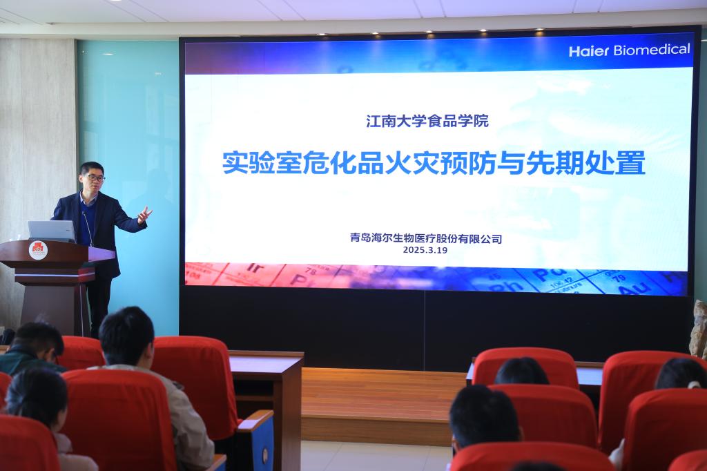随后,在室内的《实验室危化品火灾预防与先期处置》专题培训中,李公海结合实际案例讲解化学品消防常识与初期火灾扑救技巧。师生围绕“实验室初期火灾安全逃生操作”“实验室安全出口标准”“安全管理意识培养”等话题深入讨论,切实强化安全认知纵深。