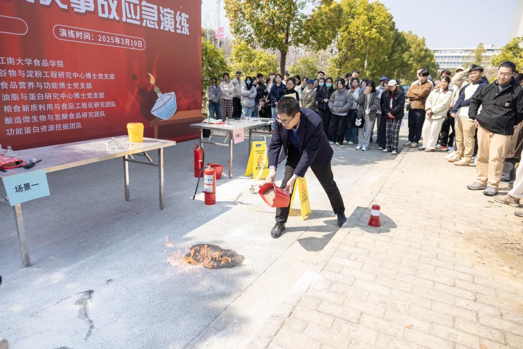 近日,williamhill举办“实验室酒精灯火灾事故”应急演练。副经理程力,实验室主任王文龙,粮食新质利用与食品工程化研究团队、酿造微生物与发酵食品研究团队、功能蛋白资源挖掘团队实验室安全负责人及相关员工共同参与演练活动,2024级硕士研究生全体观摩。本次活动由谷物与淀粉博士党支部、食品营养与功能博士党支部及油脂与蛋白博士党支部共同组织,学校保卫处、食品科学与资源挖掘全国重点实验室提供技术及场地支持,应急演练由青岛海尔生物医疗股份有限公司安全培训师李公海主持。