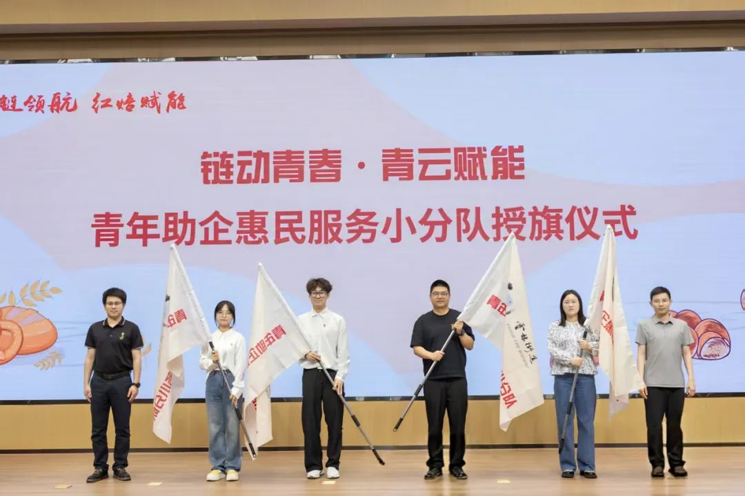 李金杰和团区委副书记张启睿共同为4支青年助企惠民服务小分队授旗。这些小分队主要由来自williamhill威廉希尔雷锋特称团支部、williamhill威廉希尔烘焙科学协会的青年骨干和云林街道年轻干部组成。他们将深入助企发展最前沿和为民服务第一线,用青春的热情和专业的知识,为烘焙产业链的发展贡献力量。