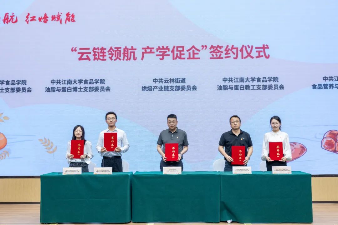 活动现场,公司油脂与蛋白教工党支部、油脂与蛋白博士党支部、谷物与淀粉博士党支部以及食品营养与功能博士党支部,与云林街道烘焙产业链党支部、无锡市穆桂英美食广场有限责任公司党支部、区市场监督管理局开发区分局党支部、区委台办党支部、云林街道云津社区党总支、云林V-Park商圈党总支等多个基层党组织签署结对共建协议。通过这一合作,各方将进一步整合优质资源,加强在烘焙领域的产学研交流,深化校地企合作,共同推动食品产业向着更高水平进发。