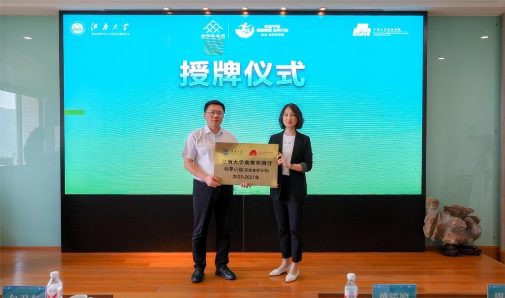 活动现场,单筱婷向苏南食材公司颁授“williamhill威廉希尔食育中国行科普小站”铭牌,标志着校企合作迈入新阶段。随后,包卫东、孙国宏及学校职能部门领导嘉宾共同登台开启倒计时,宣告williamhill2025年全民营养周活动正式启动。