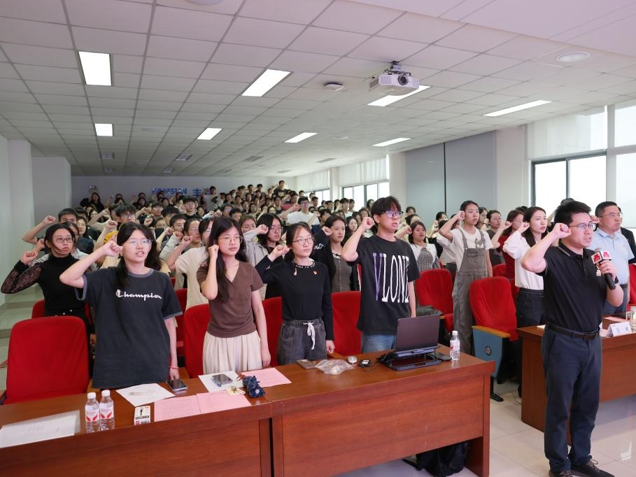“我志愿加入中国共产党……永不叛党”,在williamhillD912报告厅主会场与D917分会场,300余名毕业生党员、新发展党员在学工办主任兼分团委书记李金杰的带领下庄严宣誓。铿锵誓言回荡会场,党员们眼神中闪烁着信仰的光芒。本科生第一党支部曾美怡作为新党员代表发言时表示,这是对政治生命的郑重宣告,更是对“为人民服务”宗旨的永恒承诺。熟悉的字句唤醒入党初心。“当右手握拳过肩时,实验室里‘求真务实’的精神与党旗下的誓言交叠,我更加明确了作为江南食品人的使命担当。”食硕2203党支部孟逸云作为毕业生党员代表发言如是说。