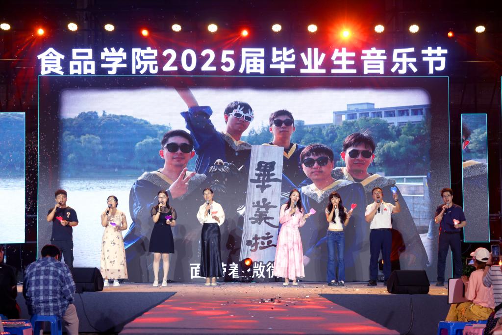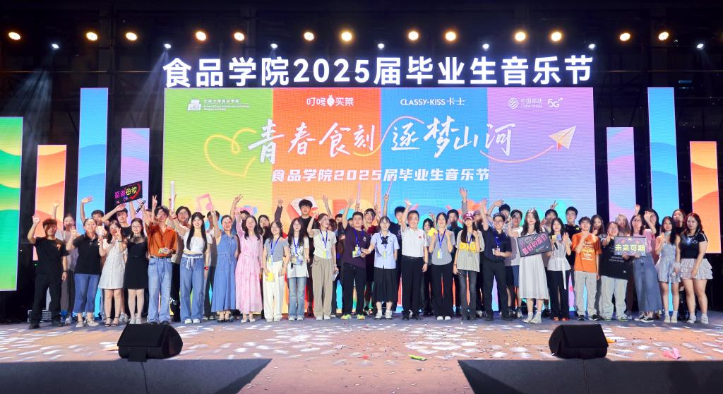 本届毕业生音乐节最终在大合唱《我的纸飞机》和《再见》的旋律中圆满落幕。师生齐聚一堂,在欢声笑语中向着崭新的未来锚定方向。江南食品学子将以青春为最真切的誓言,共谱那逐梦山河的华彩乐章!