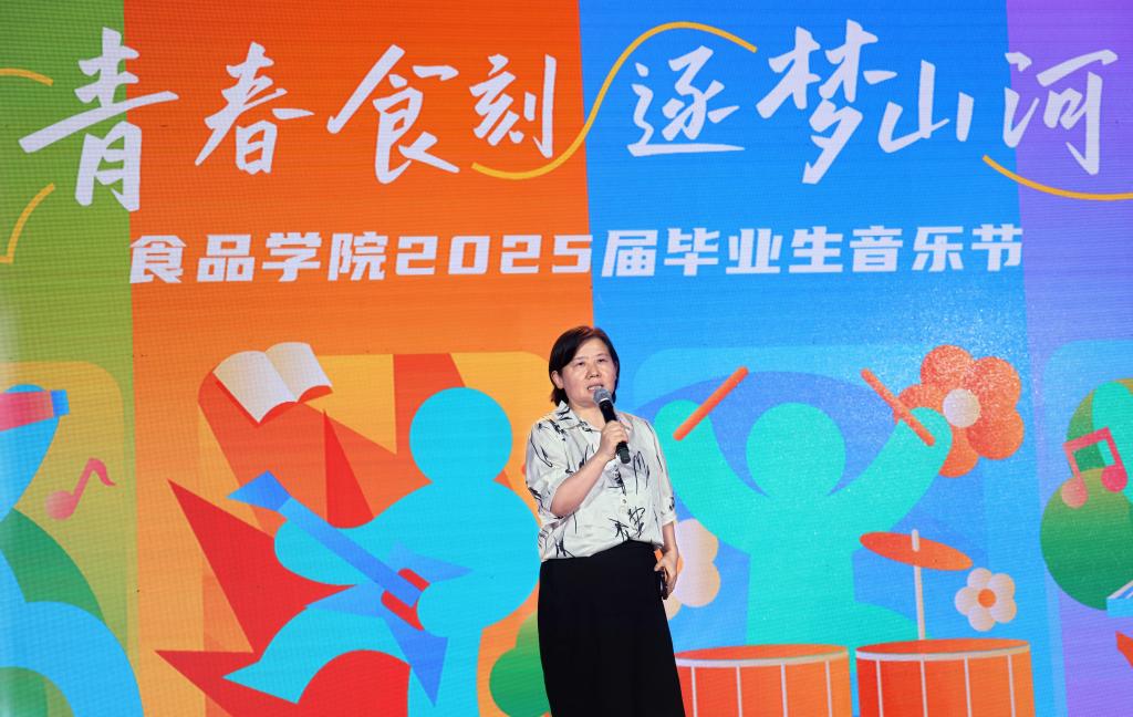 孙秀兰代表公司党政向全体2025届毕业生致以诚挚祝福,对所有演职人员表示衷心感谢。她寄语毕业生心怀梦想奔赴璀璨未来,始终以“江南食品人,敢为天下先”的精神指引人生。