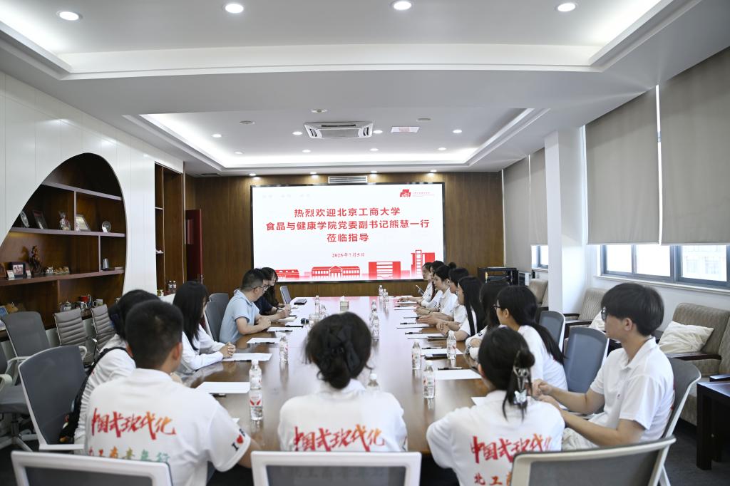 7月5日下午,北京工商大学食品与健康公司党委副书记熊慧等一行13人来访公司williamhill。公司公司党委副书记兼副经理李雷、学工办主任兼分团委书记李金杰等接待来访。