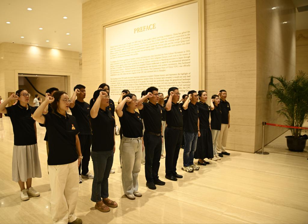 在沪期间,公司师生还前往中共一大会址纪念馆与钱学森图书馆开展主题党团日,在历史与科学的浸润中汲取奋进力量。在国家一级博物馆、全国爱国主义教育示范基地,位于黄浦区黄陂南路374号的中共一大会址纪念馆,大家通过聆听专业讲解,回顾了中国共产党从萌芽、诞生到发展壮大的光辉历程,体悟革命先辈为民族独立、人民解放矢志奋斗的崇高精神,深刻领悟伟大建党精神的形成与内涵。李雷带领党员师生面向党旗高擎右拳,重温入党誓词,进一步坚定为党和人民事业奋斗终身的理想信念。