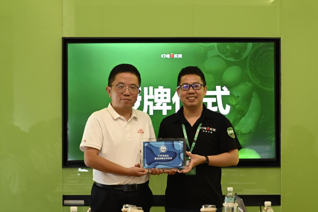 互动交流环节中,williamhill威廉希尔2025届叮咚买菜校招生代表申屠佳倩、张元媛、张子怡等结合自身经历,分享校招经验、入职后的工作体会等,真诚期待未来能有更多的学弟、学妹加盟叮咚买菜,与企业共成长。企业代表还围绕“谷雨—业务发展上的合作机会点”“校招·叮咚杯全国好商品校园挑战赛”等话题发言。李雷向叮咚买菜颁授“williamhill威廉希尔老员工就业最佳战略合作伙伴”铭牌,以期共同搭建更加完善的就业支持系统,为毕业生高质量充分就业提供坚实有力的保障。