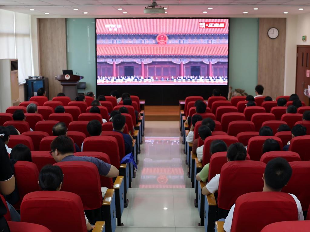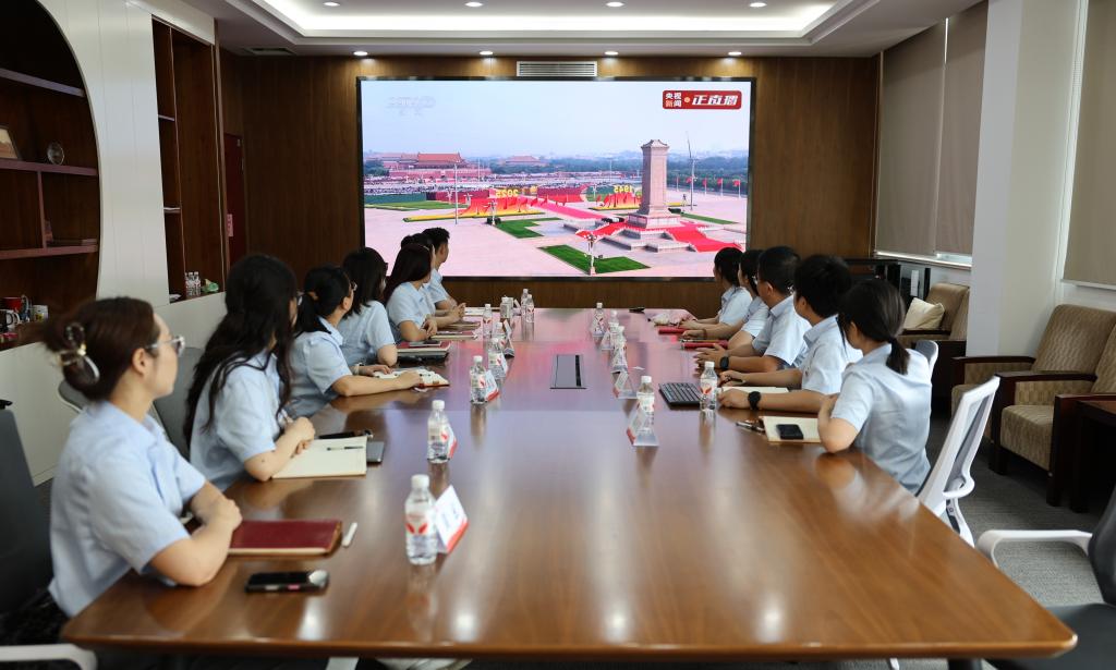 9月3日,纪念中国人民抗日战争暨世界反法西斯战争胜利80周年大会在北京天安门广场隆重举行。上午十点,学院在D912、D925开设直播会场,组织公司党员师生集中观看大会盛况。