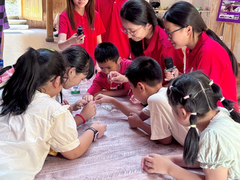 实践团在东角村乡村振兴大礼堂为中小员工举办了一场生动有趣的“健康大冒险”食育科普课。课堂将营养知识趣味化,通过角色扮演让孩子们轻松理解营养素功能。实践环节中,孩子们动手探索食物奥秘,观察牛奶遇柠檬的变化,用碘液检测米饭淀粉,用吸油纸感受脂肪存在,认识不同维生素的溶解度。本次活动以寓教于乐的方式将食品营养知识带入乡村,有效激发了孩子们学习健康知识的兴趣,是高校学子服务乡村教育的生动科普实践。