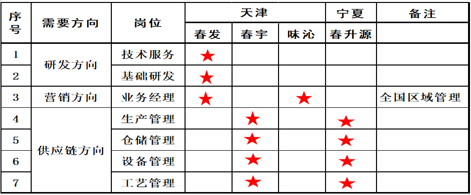 5.工作地点:天津-春宇公司 或 宁夏-春升源公司 (依个人愿意定工作地点)
