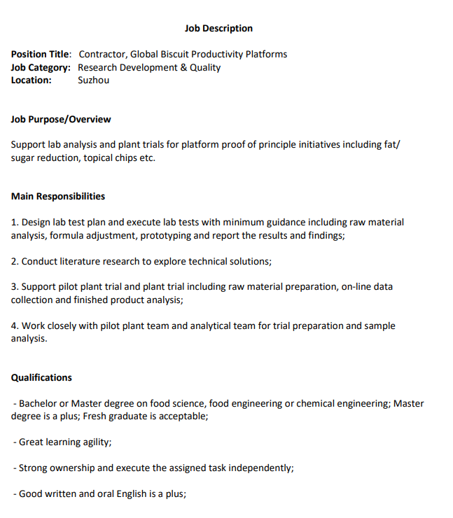 就业【2021】 167号 食研食品(中国)有限公司2021届招聘简章